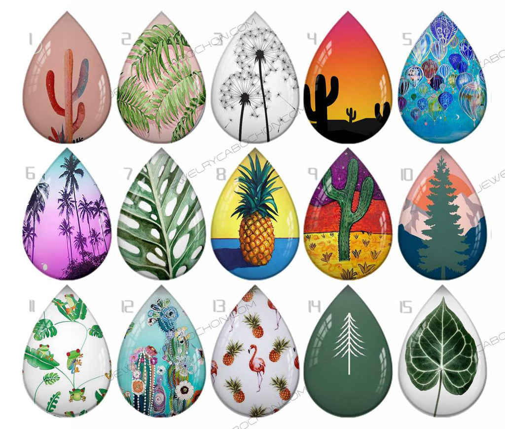 Handmade Teardrop Photo Glass Cabochons pattern geometric 936