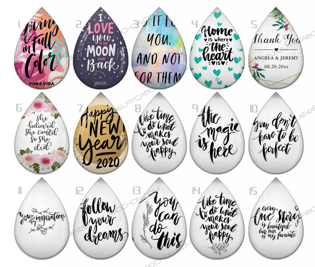 Handmade Teardrop Photo Glass Cabochons pattern geometric 942