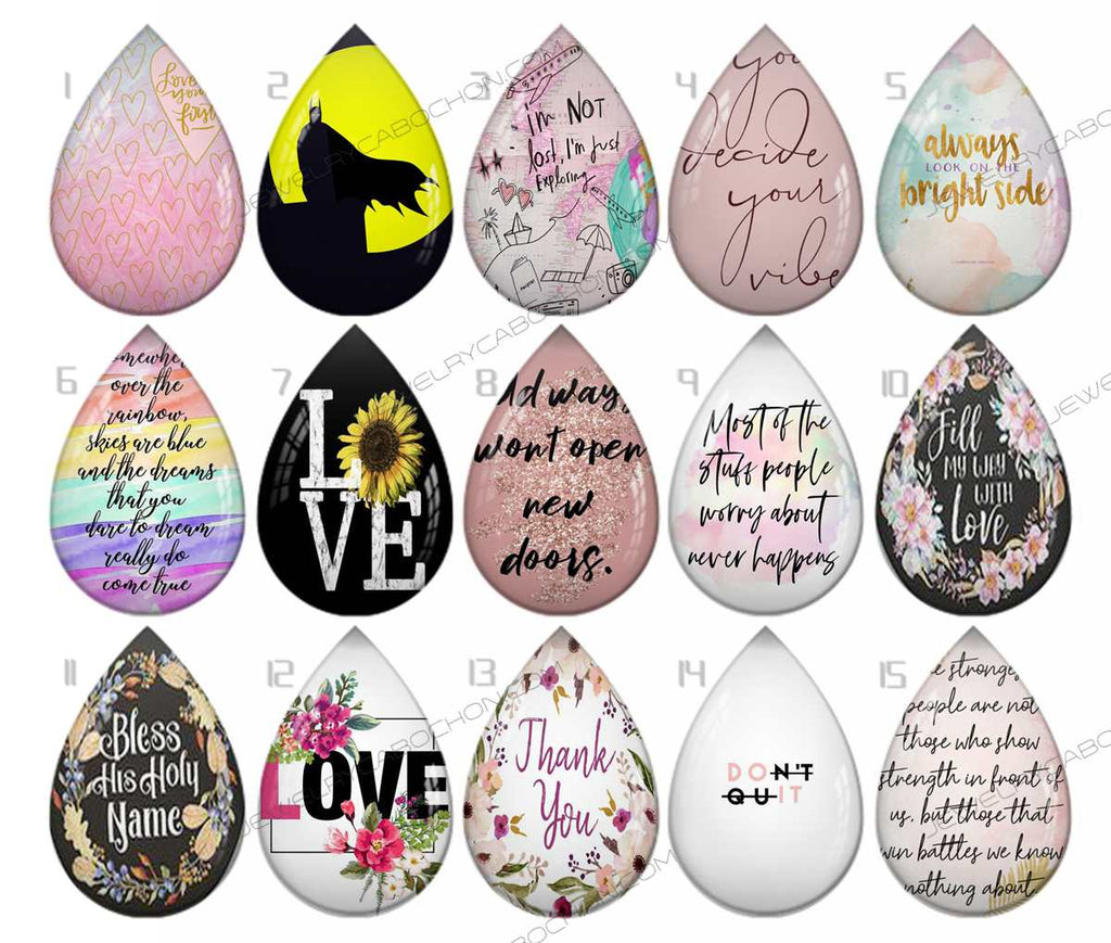 Handmade Teardrop Photo Glass Cabochons pattern geometric 950