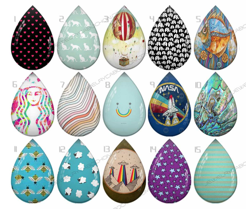 Handmade Teardrop Photo Glass Cabochons pattern geometric 959