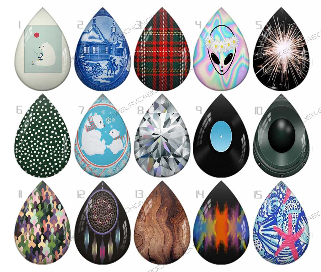 Handmade Teardrop Photo Glass Cabochons pattern geometric 960