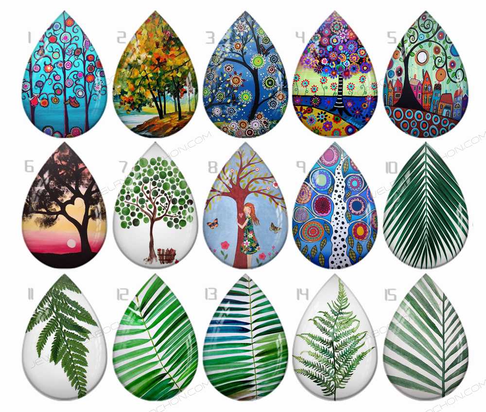 Handmade Teardrop Photo Glass Cabochons Plant tree B192
