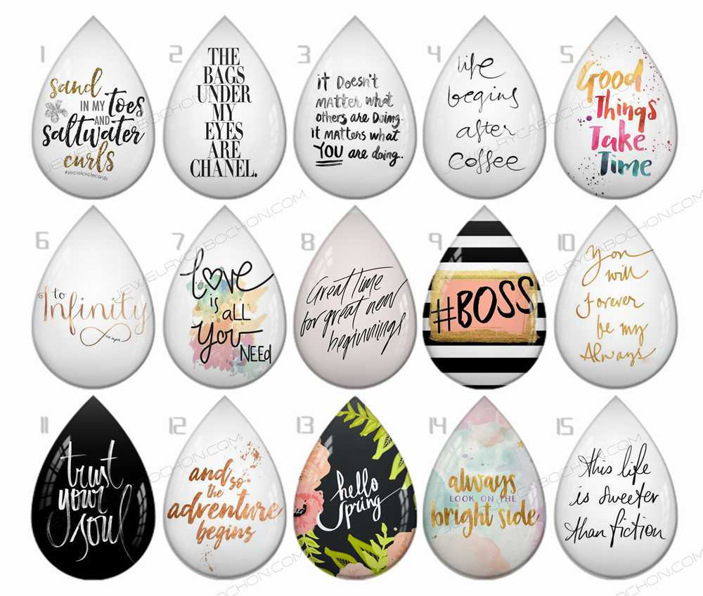 Handmade Teardrop Photo Glass Cabochons sentence B201
