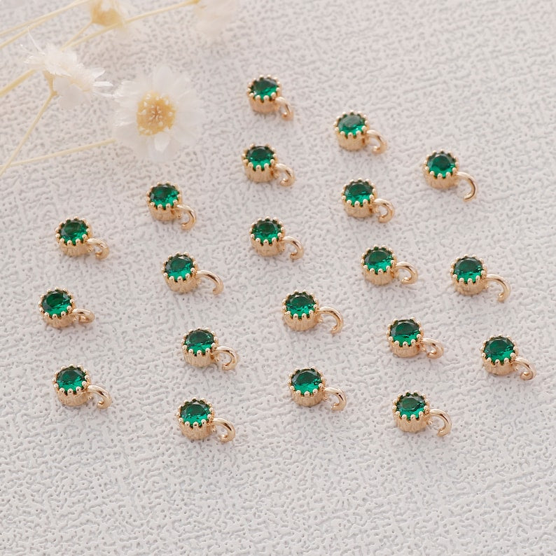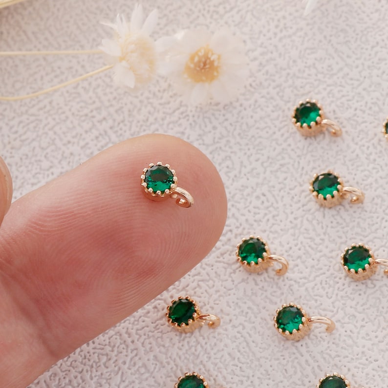 Preferential !!! 10pcs Gold Plated Zircon Charm,Gold Initial Charm,Tiny cz Pendant,cz Pave Charm, Green, Wholesale