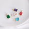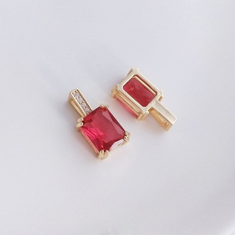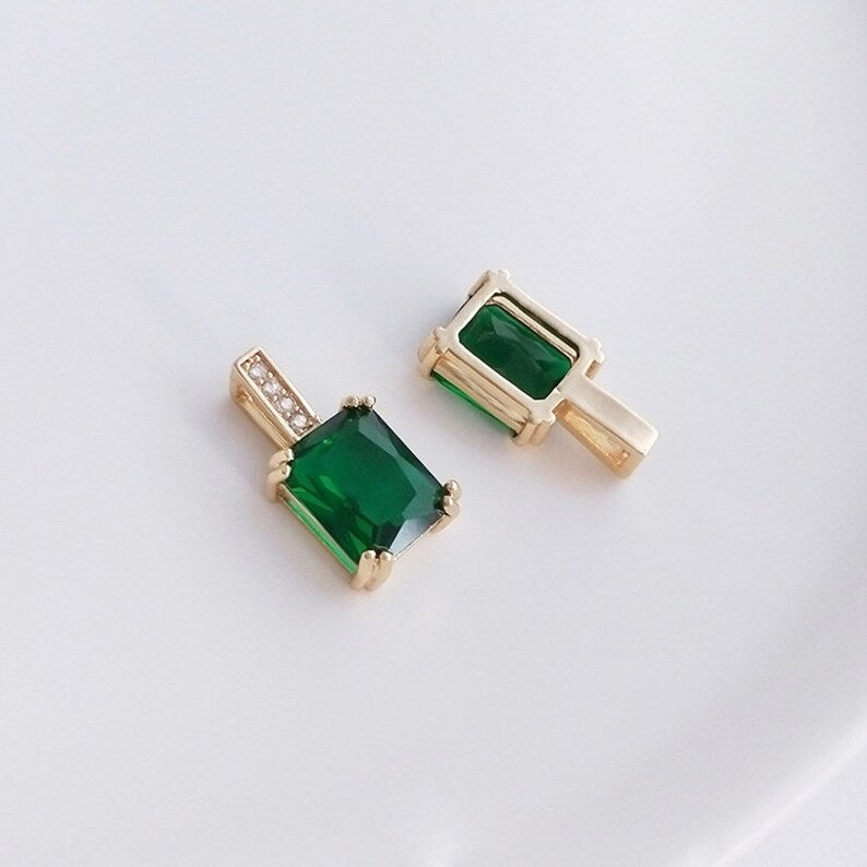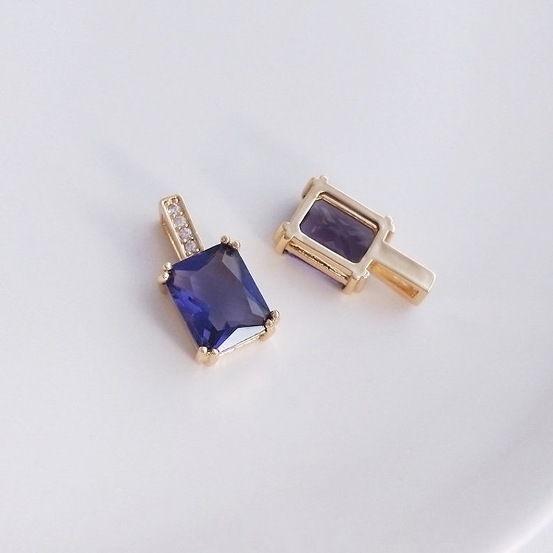 Rectangle framed glass CZ Pave charm, Gold plated brass, Cutting glass, Dainty charm, Zircon Wholesale jewelry supplies, 4 piece
